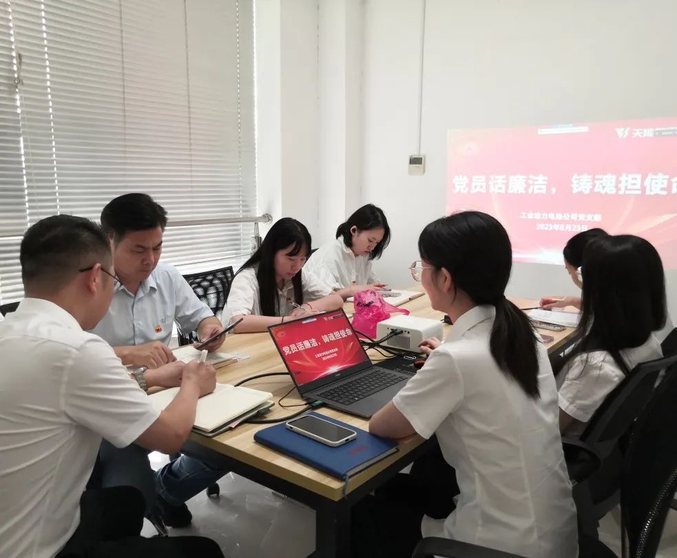 8月23日,工业动力电池公司党支部依托线上平台连通长兴和沭阳两个地区的党员开展8月主题党日活动。会上,通过开展观看廉洁短片、讲述廉洁故事、分享廉洁宣言、撰写廉洁心得等一系列活动,切实将清廉文化建设融入日常、化作经常。